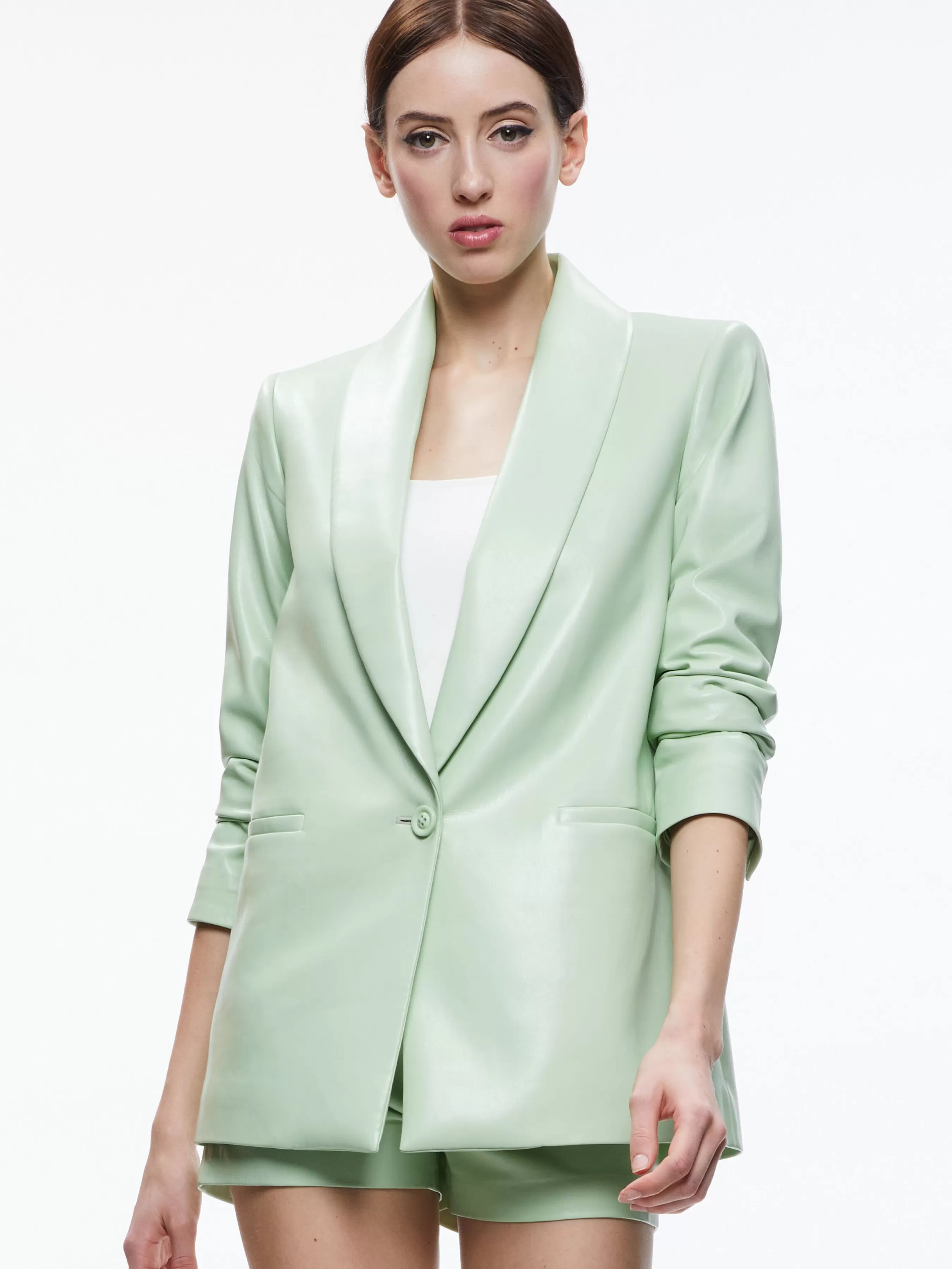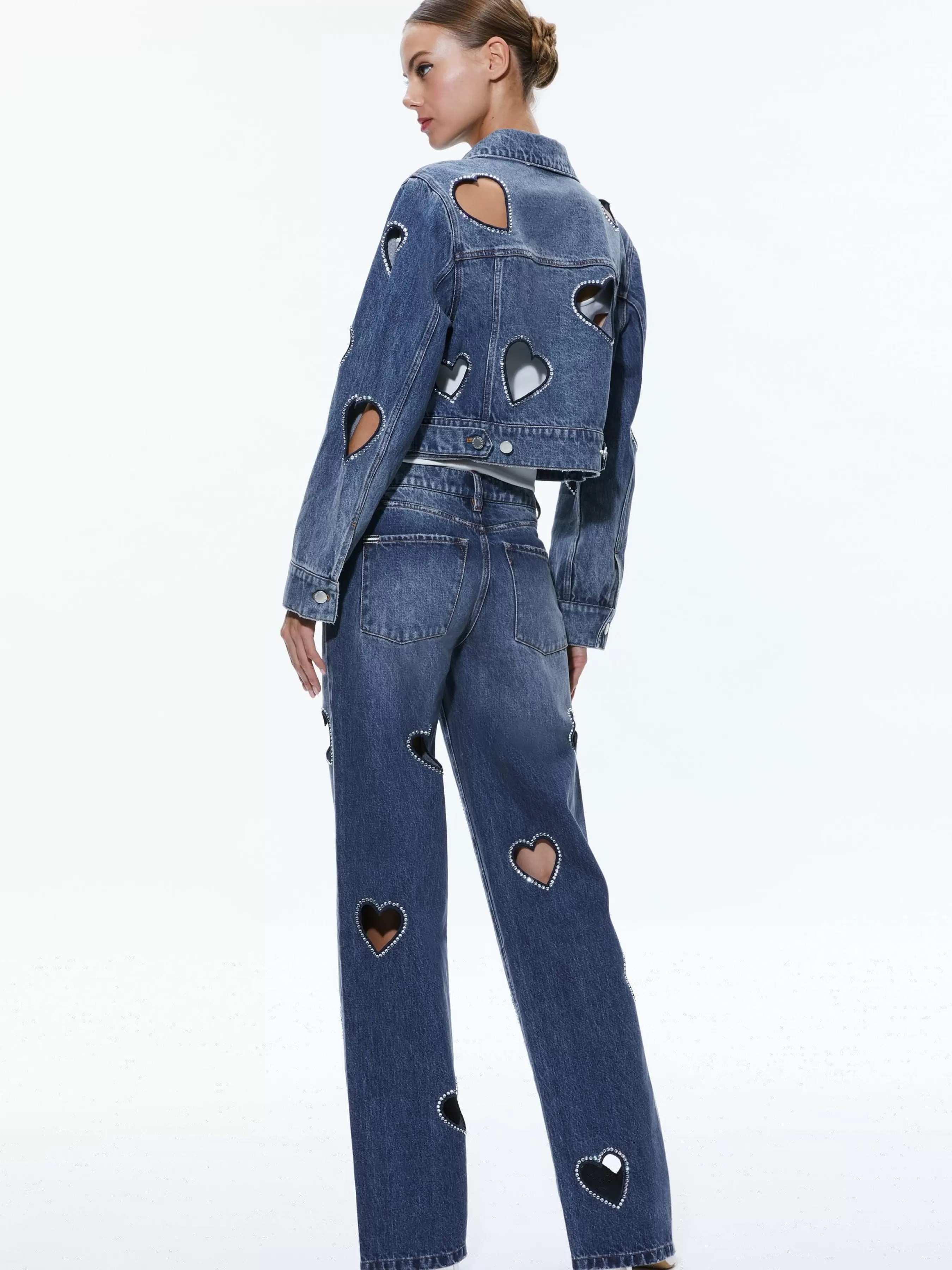 Alice and Olivia JEFF HEART EMBELLISHED CROPPED DENIM JACKET + KARRIE EMBELLISHED HEART JEAN