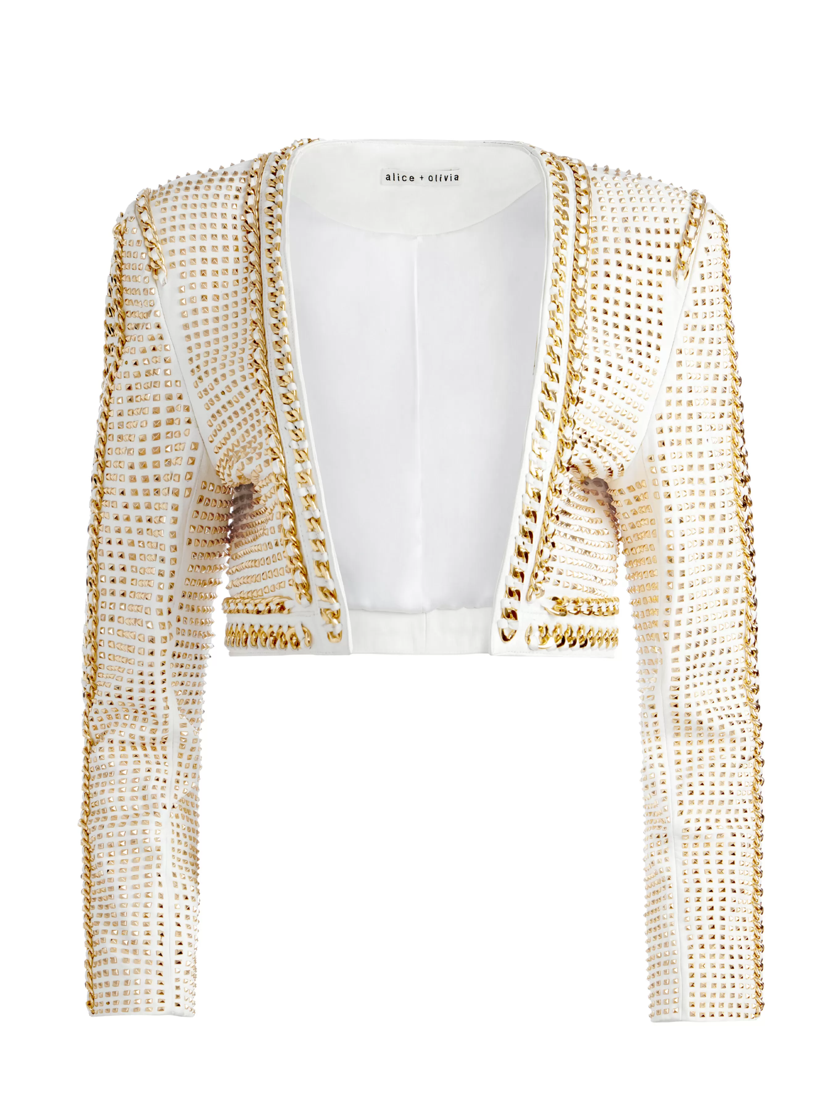 Alice and Olivia MAIRA CROPPED JACKET WITH CHAIN TRIM